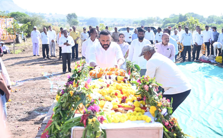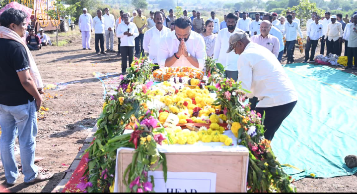 अंत्यसंस्काराच्या ठिकाणी ग्रामविकास व पंचायतराज मंत्री तथा सोलापूर जिल्ह्याचे पालकमंत्री ना. जयकुमार गोरे यांनी शहीद वीर जवान शेखर जगदाळे यांच्या पार्थिवावर पुष्पचक्र अर्पण करून अभिवादन केले.