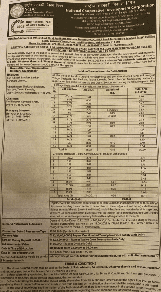 अखेर आदिनाथ सहकारी साखर कारखान्याचा लिलाव निघाला… पालकत्व घेतलेले यांच्या सुद्धा कारखान्याचा असाच लिलाव निघणार ?का…