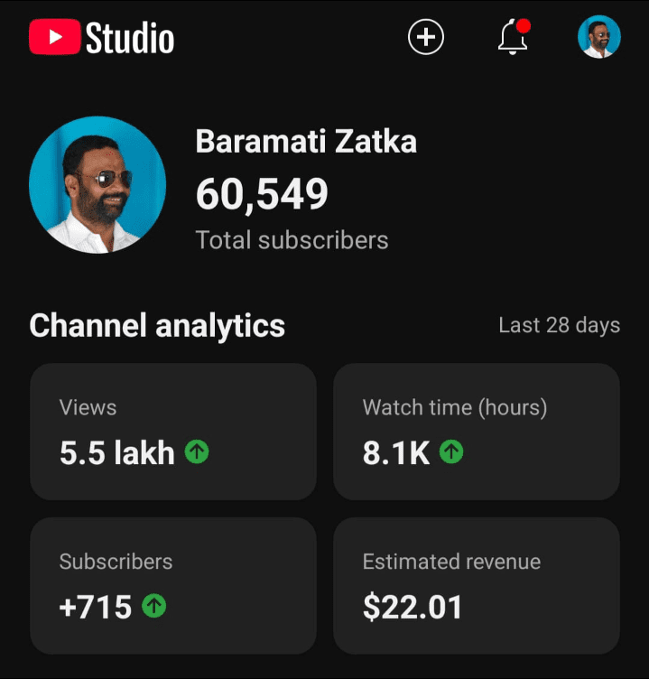 बदलत्या काळानुसार सोशल मीडिया बदलत गेला, त्यामुळे बारामती झटका साप्ताहिकाचे बारामती झटका वेब पोर्टलमध्ये रूपांतर केले. बारामती झटका वेब पोर्टल वाचणाऱ्या वाचकांची संख्या 03 कोटी 75 लाखाच्या आसपास गेलेली आहे. तर बारामती झटका यूट्यूब चॅनल पाहणाऱ्या प्रेक्षकांची संख्या 01 कोटी 50 लाखाच्या आसपास गेली आहे. बारामती झटका यूट्यूब चॅनलची एक बातमी 30 लाख 50 हजारांवर गेली असून 61 हजार प्रेक्षकांनी चॅनल सबस्क्राईब केलेला आहे. यूट्यूब चॅनल 05 लाख 40 हजार तास प्रेक्षकांनी पाहिलेला आहे.. बारामती झटका वेब पोर्टल आणि युट्युब चॅनेल प्रेक्षक व वाचकांची दिवसेंदिवस लोकप्रियता वाढत चाललेली आहे. साडेतीन मुहूर्तापैकी एक मुहूर्त असणाऱ्या दीपावली पाडव्याच्या वाचक, प्रेक्षक, हितचिंतक, मित्रपरिवार व नातेवाईक यांना दीपावलीच्या संपादक श्रीनिवास शिवाजीराव कदम पाटील यांचे कडून खूप खूप शुभेच्छा..
