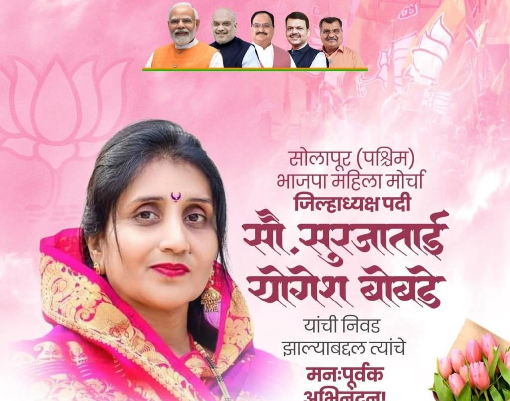 राजकारणाबरोबर संघटन कौशल्य असल्याने सोलापूर जिल्ह्यात महिलांचे चांगले संघटन बांधून भविष्यात भारतीय जनता पक्षाची महिला मोर्चा ताकद वाढणार आहे. सुरजाताई बोबडे यांच्या निवडीने महिलांमध्ये नवचैतन्य निर्माण झालेली आहे….