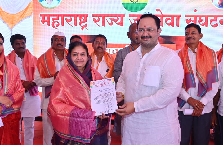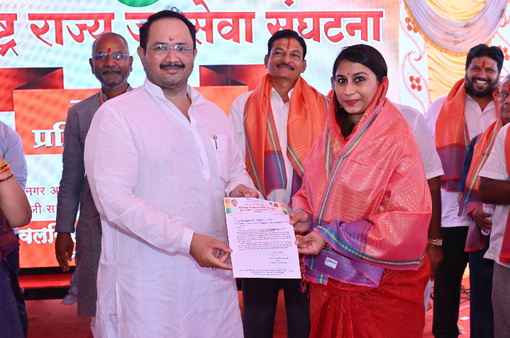 माळशिरस तालुक्याचे भाग्यविधाते सहकार महर्षी शंकरराव मोहिते पाटील यांच्या मार्गदर्शनाखाली महाराष्ट्र राज्याचे माजी सहकार राज्यमंत्री लोकनेते स्वर्गीय प्रतापसिंह शंकरराव मोहिते पाटील यांनी जीवात जीवमान असे तोवर जनसेवाच करू, या ब्रीदवाक्याने स्थापन केलेल्या महाराष्ट्र राज्य जनसेवा संघटनेच्या नूतन पदाधिकारी जिल्हा परिषद गट अध्यक्ष व पंचायत समिती गण अध्यक्ष, नगर परिषद व नगरपंचायत वार्ड अध्यक्ष व कार्यकर्त्यांचा प्रशिक्षण शिबिर रविवार दि. 20/07/2025 रोजी प्रतापगड, धवलनगर येथे कार्यकर्ता प्रशिक्षण शिबिर व नियुक्ती पत्राचे वाटप महाराष्ट्र राज्य कुस्तीगीर संघटनेचे राज्य कार्याध्यक्ष सोलापूर जिल्हा तालीम संघाचे अध्यक्ष सोलापूर जिल्हा काँग्रेस कमिटीचे माजी अध्यक्ष व सोलापूर जिल्हा परिषदेचे माजी सदस्य युवा नेते डॉक्टर धवलसिंह प्रतापसिंह मोहिते पाटील यांच्या शुभहस्ते नूतन पदाधिकाऱ्यांना निवडीचे पत्र वाटप करण्यात आले. यामध्ये सोलापूर जिल्हा परिषदेच्या माजी विरोधी पक्षनेत्या व पुण्यश्लोक राजमाता अहिल्यादेवी होळकर विद्यापीठाच्या सिनेट सदस्या पद्मजादेवी प्रतापसिंह मोहिते पाटील उर्फ आईसाहेब यांनी महाराष्ट्र राज्य जनसेवा संघटनेच्या राज्य कार्यकारणी सदस्य पदाचे पत्र चिरंजीवाच्या हस्ते स्वीकारताना,