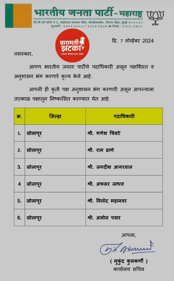 विधानसभा निवडणुकीत भाजपविरोधी काम केल्यामुळे पक्षातून शिस्तभंगाची कारवाई करण्यात आली होती…