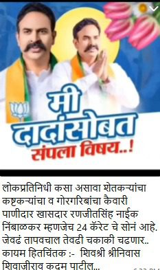 फलटण तालुक्यातील शेतकऱ्यांचा, कष्टकऱ्यांचा, गरिबांचा कैवारी आदरणीय माजी खासदार श्री. रणजितसिंह नाईक निंबाळकर.