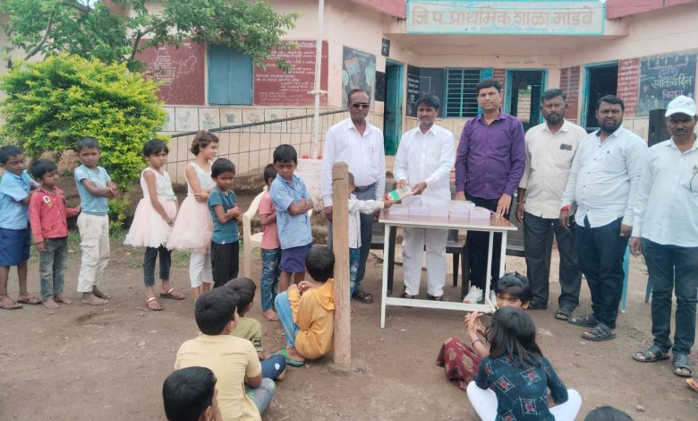 मांडवे येथे अण्णाभाऊ साठे यांच्या जयंतीनिमित्त विद्यार्थ्यांना शालेय उपयोगी साहित्य व खाऊ वाटप
