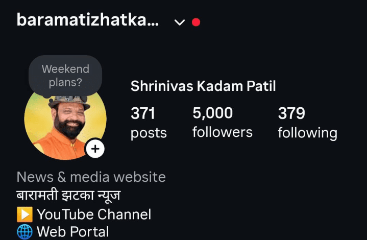 पाच हजार फॉलोवर्स इंस्टाग्रामवर झाले, वर्षात पन्नास हजाराचे उद्दिष्ट पूर्ण करणार संपादक श्रीनिवास कदम पाटील..