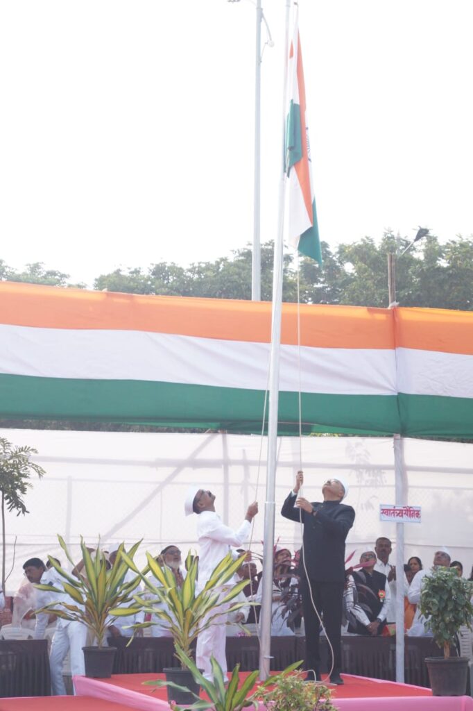 मुख्य कार्यक्रमापूर्वी प्रशासकीय भवन येथे ध्वजवंदन प्रशासकीय भवन येथील प्रांगणात तहसीलदार स्वप्नील रावडे यांच्या हस्ते ध्वजवंदन करण्यात आले. यावेळी निवासी नायब तहसीलदार नामदेव काळे, तहसील कार्यालय तसेच प्रशासकीय भवनातील विविध विभागाचे अधिकारी कर्मचारी, नागरिक उपस्थित होते.